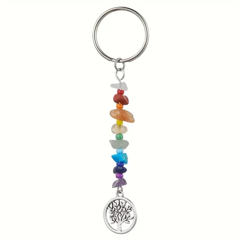 Porte-clés Arbre de Vie avec Perles de Pierres Précieuses Naturelles